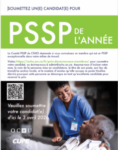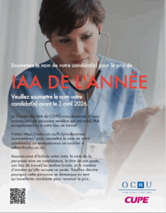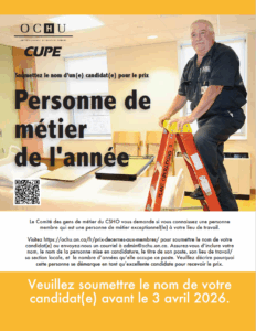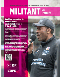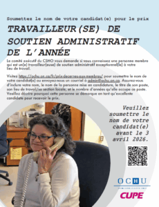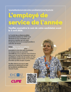 Les mises en nomination pour les Prix des membres de l’OCHU sont maintenant ouvertes. Chaque année, l’OCHU/SCFP reconnaît des membres exceptionnels grâce à ces prix.